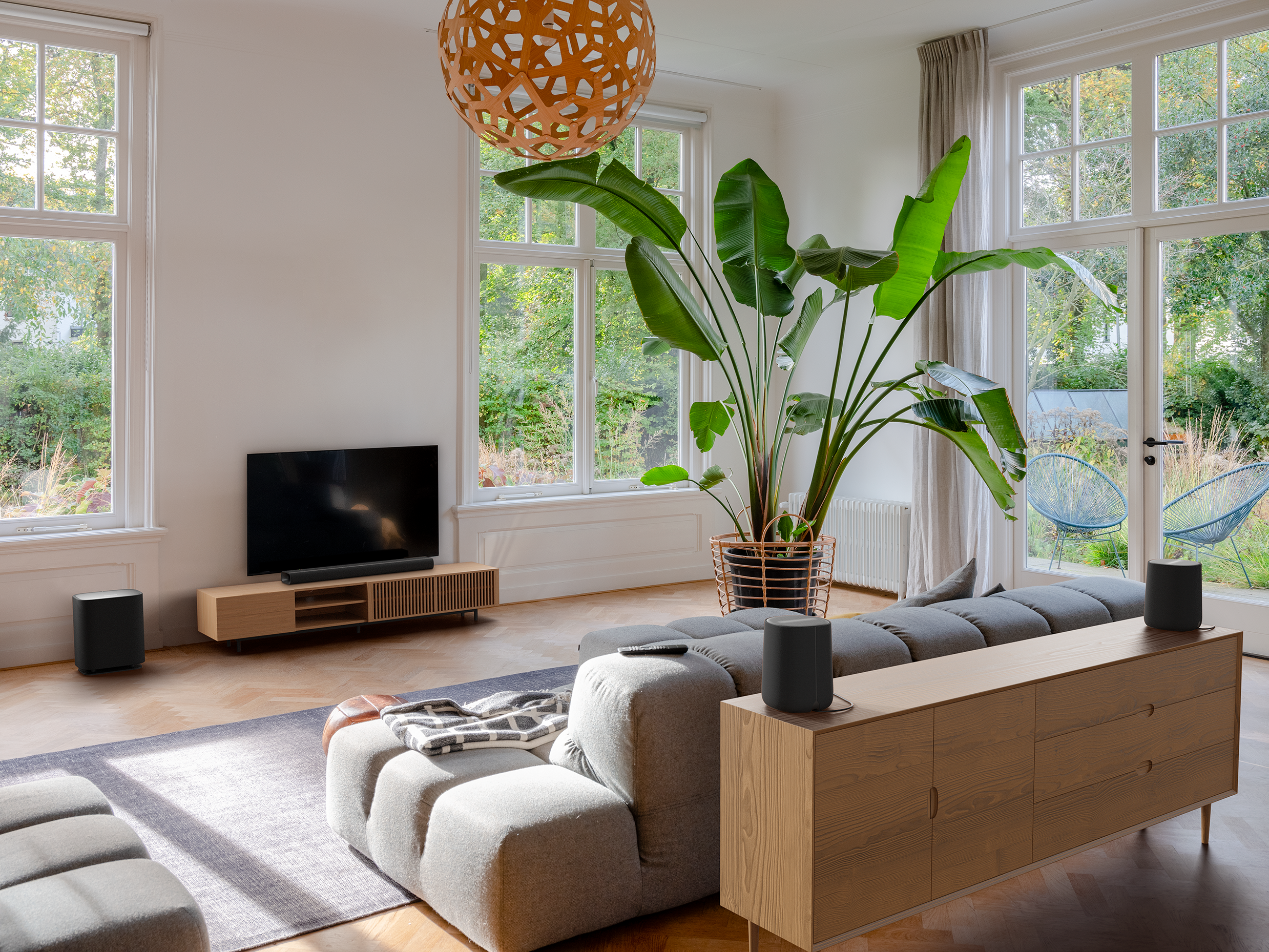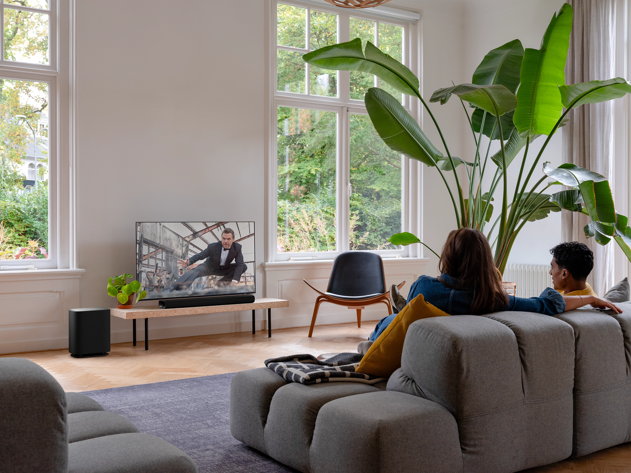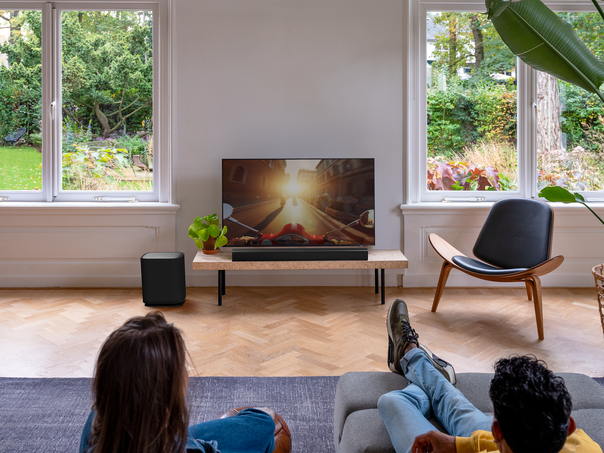 Taking the already great sound of your Enchant soundbar —and making it spectacular. That's the magic of the Harmon Kardon Enchant Sub. Wirelessly connect it to the Enchant 900 or Enchant 1100 and instantly, you'll hear the soundbar's wide, enveloping soundstage become even deeper and more lifelike. The 6.5" down-firing subwoofer adds pure, deep, rich bass, while the newly designed bass reflector keeps that low end clean and precise, even if you set the Sub down on carpet. This kind of sound experience makes movies pull you deeper into their worlds. Games become even more exhilarating. And music invites you to get up and move. The sleek, compact design and pleasing aluminum top panel make the space-efficient Enchant Sub fit into any room, with any style of decor. Setup is simple using the Harman Kardon One app, which you can also use to customize the advanced audio settings. The Enchant Sub takes your home audio experience to the next level.
