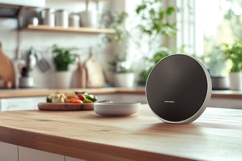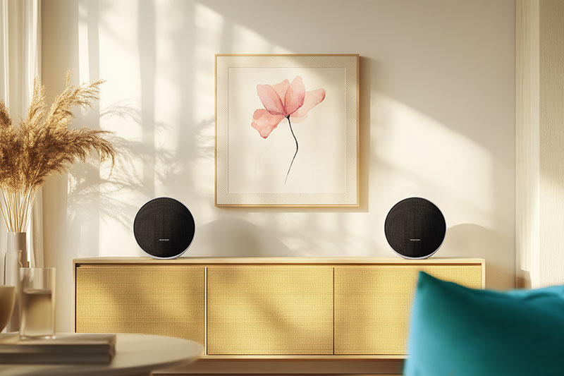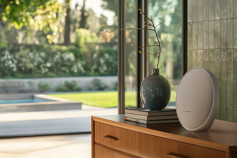 Elevate your everyday listening to an extraordinary sound experience with the Harman Kardon Onyx Studio 9. This elegant wireless Bluetooth® movable home speaker delivers superior audio performance with crystal-clear vocals, bright highs, and deep bass that make your favorite music feel thrillingly immersive. Constant Sound Field technology widens the soundstage and improves the clarity and detail of your music. The substantial integrated handle (made with 90% recycled aluminum) and built-in battery with 8 hours of playtime make the Onyx Studio 9 easy to move with you in and around your home, and a built-in USB port recharges your device while you enjoy your music. And thanks to automatic self-tuning, it always delivers the best possible sound performance wherever you set it down.