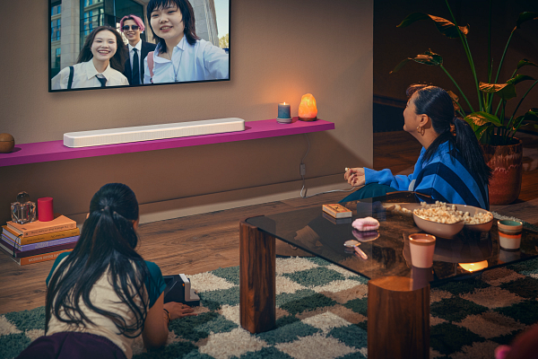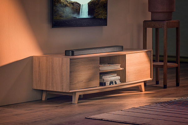 our almost century-long Hollywood heritage. Whether you’re watching or gaming, enjoy crystal-clear dialogue, Dolby Atmos® surround effects, and a wide soundstage that elevates your entertainment experience. Plus, easy access to hundreds of streaming services, so you can groove to your favorite music with best-in-class sound all night long. All from a smartly designed soundbar that’s perfect for cozy rooms and works with every brand of TV. Hear the sound come alive.