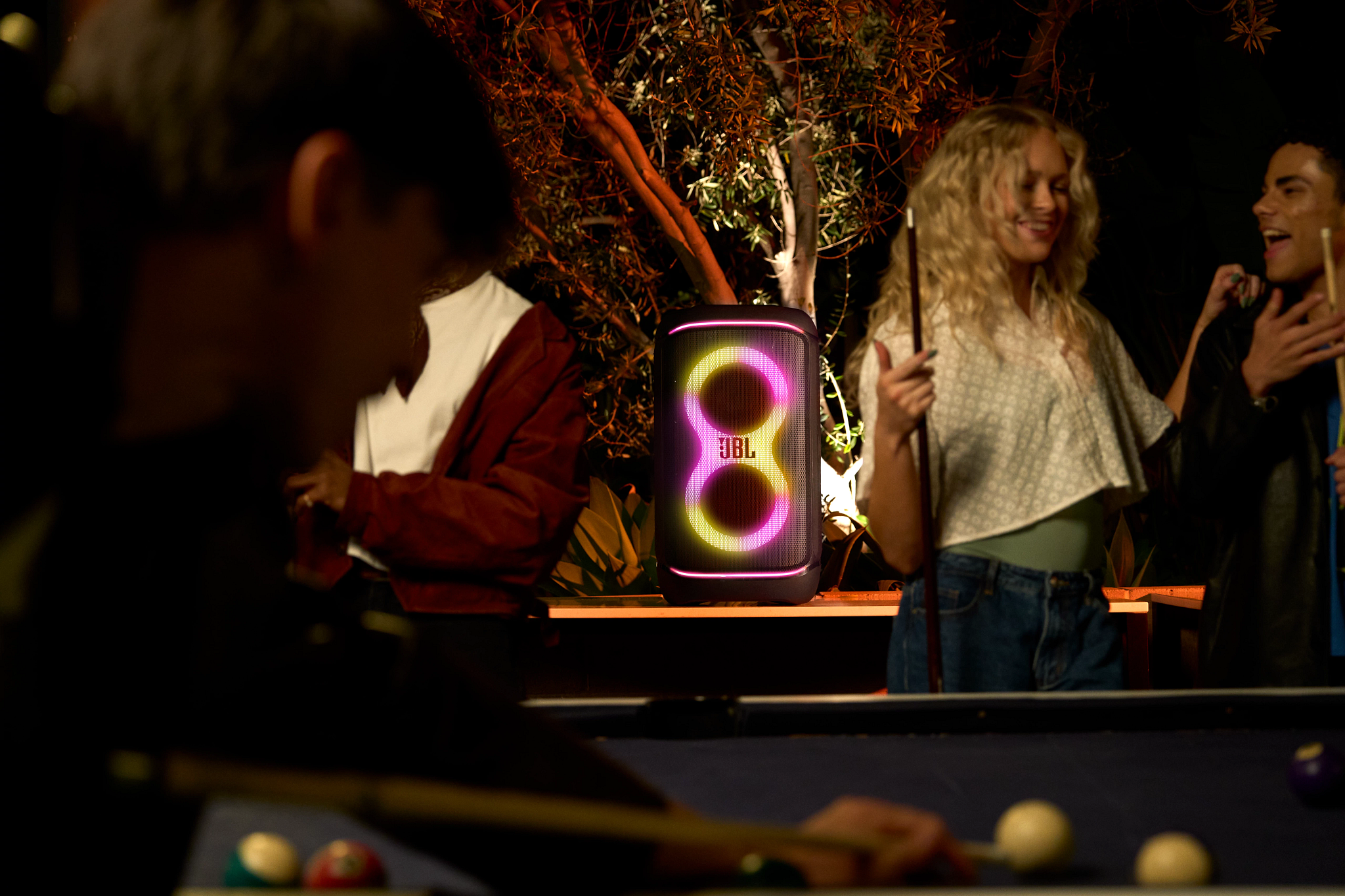 Got big plans that call for big sound? The JBL PartyBox 520 knows how to set the mood with a vibey lightshow and our biggest, boldest, thumping sound yet, powered by the all new AI Sound Boost tech to help get everyone moving and shaking. Our sound might be heavy but this speaker is easy to move, whether we’re setting up in the backyard, by the pool, or that place where our friend just dropped a pin.