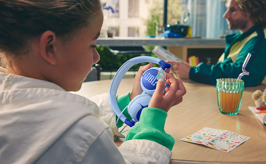 JBL Junior 320 wired on-ear headphones introduce a whole new generation to JBL sound at volumes that are safe for their ears. They won’t go beyond 85dB, protecting young listeners from dangerous sound levels. Designed for young listeners, the JBL Junior 320 are comfortable to wear, with durable oversized controls that are easy for even the littlest hands to use. A built-in mic lets kids chat with family, friends, or teachers easily. The headphones come in two fun colorways and include a JBL sticker set so your little rockstars can personalize their look. Great sound has no age limit.