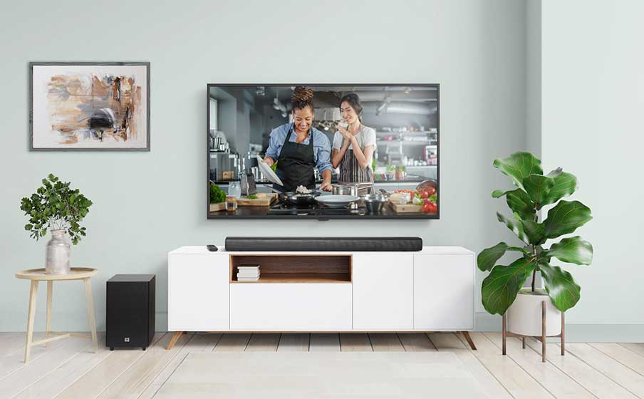 Step up your sound with the 3.1 channel JBL Cinema SB560 soundbar. 250 watts of powerful Dolby Audio in a compact design, plus extra deep, extra loud bass from a wireless 5.25” subwoofer will make everything you watch more exciting. A dedicated center channel means TV and film dialogue always sounds crystal clear. Setup is simple, with a choice of either a one-cable HDMI ARC or optical connections. And when the TV is off, seamless Bluetooth connectivity means you can use it to play your favorite streaming music and podcasts from any device.