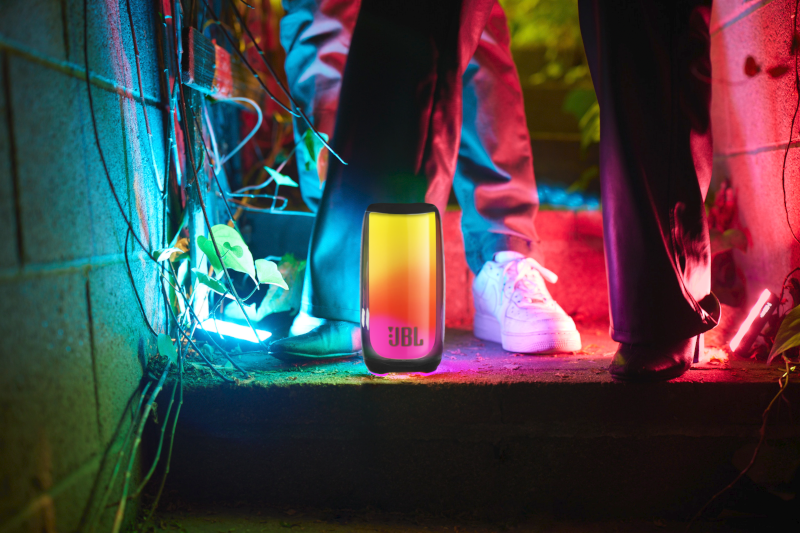 lluminate the moment with the eye-catching, personalizable, 360-degree light show of the JBL Pulse 5 in sync with the beat of your music as its upfiring driver unleashes deep bass and bold JBL Original Pro Sound in all directions. The sturdy strap lets you take the portable dustproof and waterproof Bluetooth speaker from your backyard to the beach and beyond. Dance until dawn with 12 hours of play time or use PartyBoost to pair multiple compatible speakers whenever you want to increase the sound—and enhance the experience.