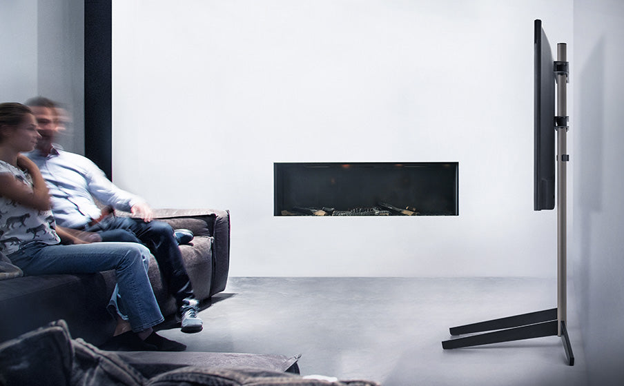 Our stylish TV Stand allows you to mount your 32” - 65” TV without the need to drill holes. The EZ Stand will give a modern look to your interior and is easily repositioned to adjust the layout of your room.
