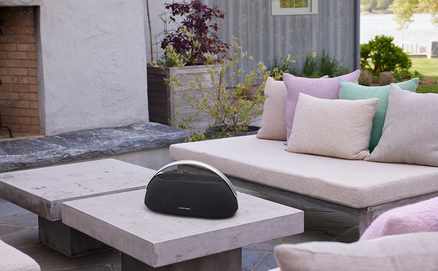 With its refined silhouette, substantial, high-quality aluminum handle, and tempered glass touch panel, the Harman Kardon Go + Play 3's sleek design looks beautiful and sounds even better—thanks to its high output and crystal clear 3-way stereo sound. Plus it automatically tunes itself to its new surroundings, so that your music always sounds its best.
