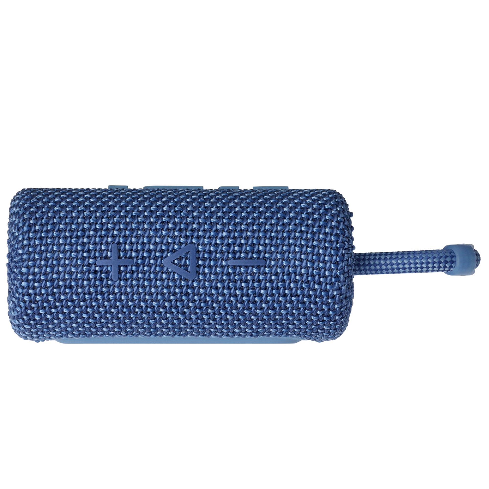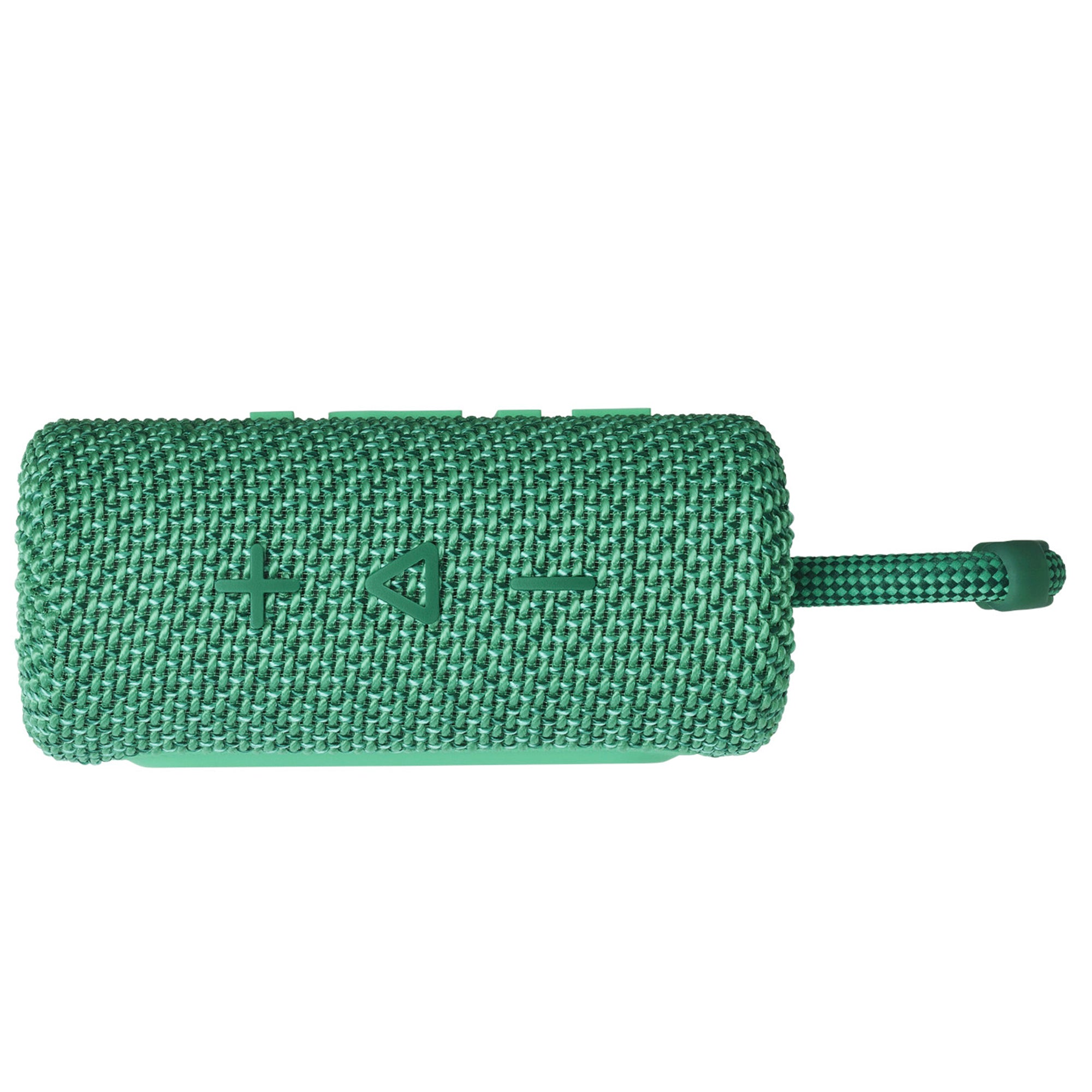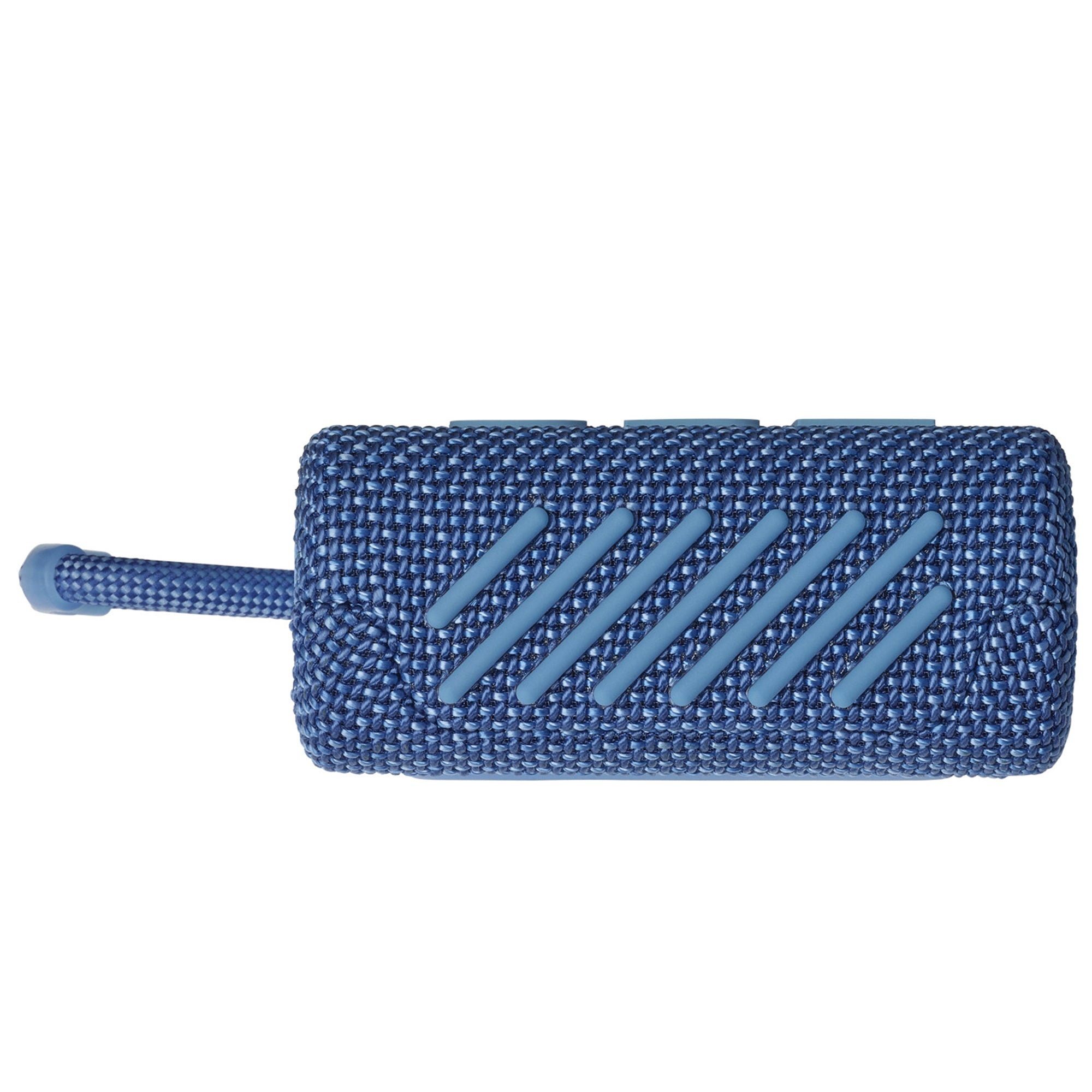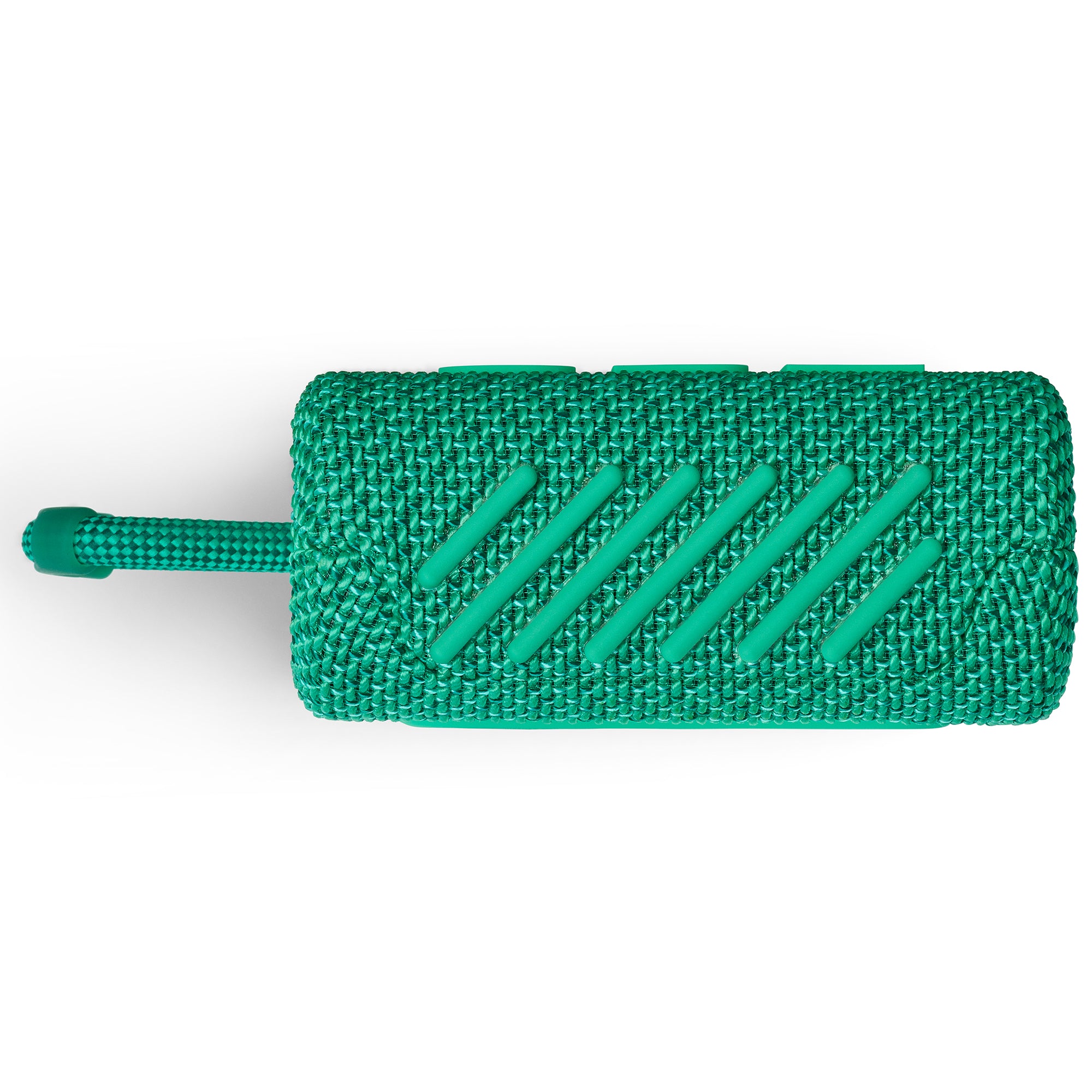 New innovative, eco-friendly design—same big audio performance. Help make the world a little greener with a must-have accessory for your next outing, made from up to 90% post-consumer recycled plastic and wrapped in 100% recycled fabric on the speaker grille. The JBL Go 3 Eco looks as vivid as it sounds with bold styling, expressive, edgy details, and rich JBL Original Pro Sound. The waterproof and dustproof design also features an integrated loop, so you can take your music anywhere, rain or shine, sustainably.