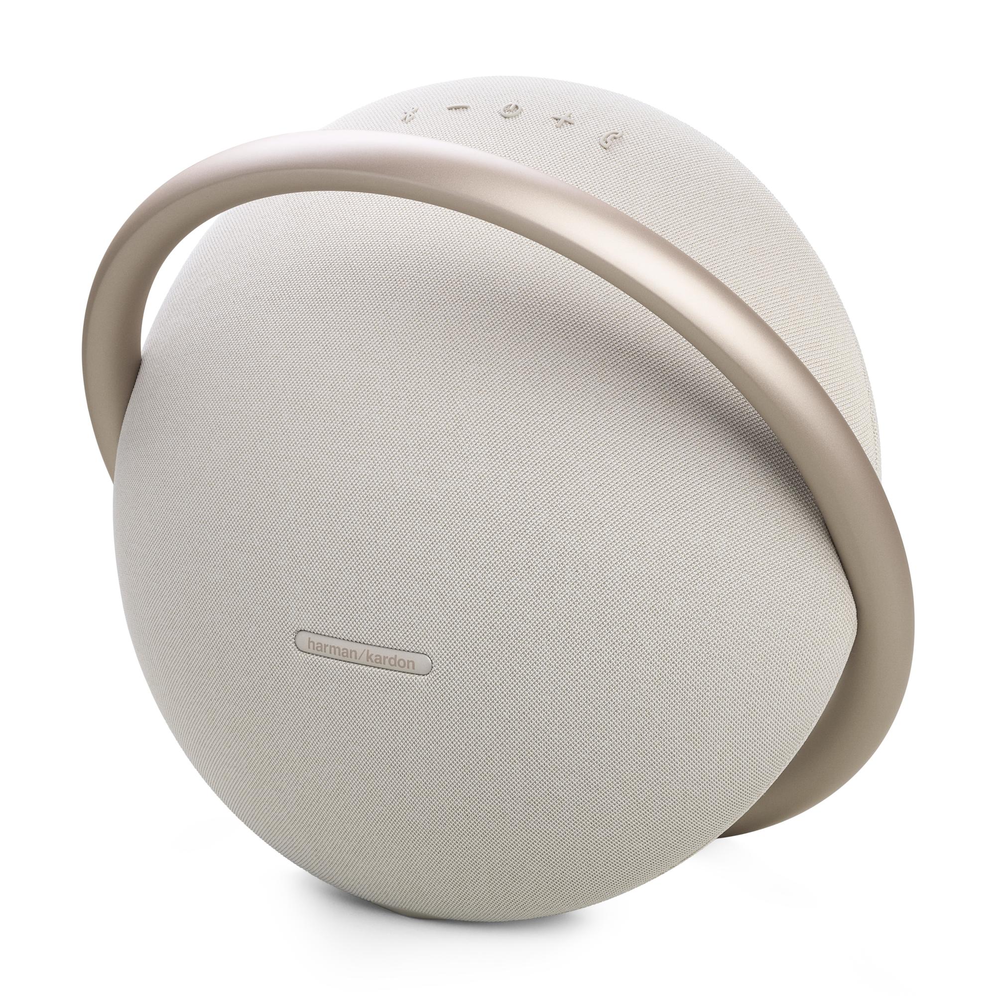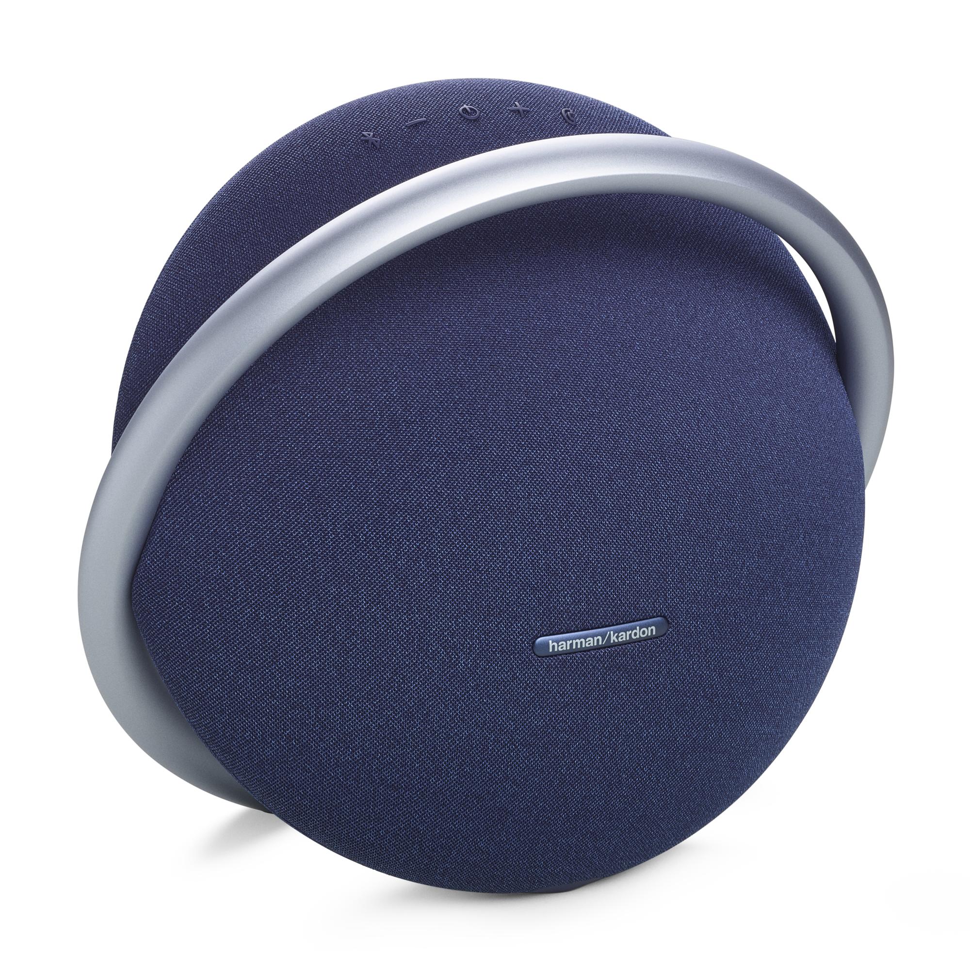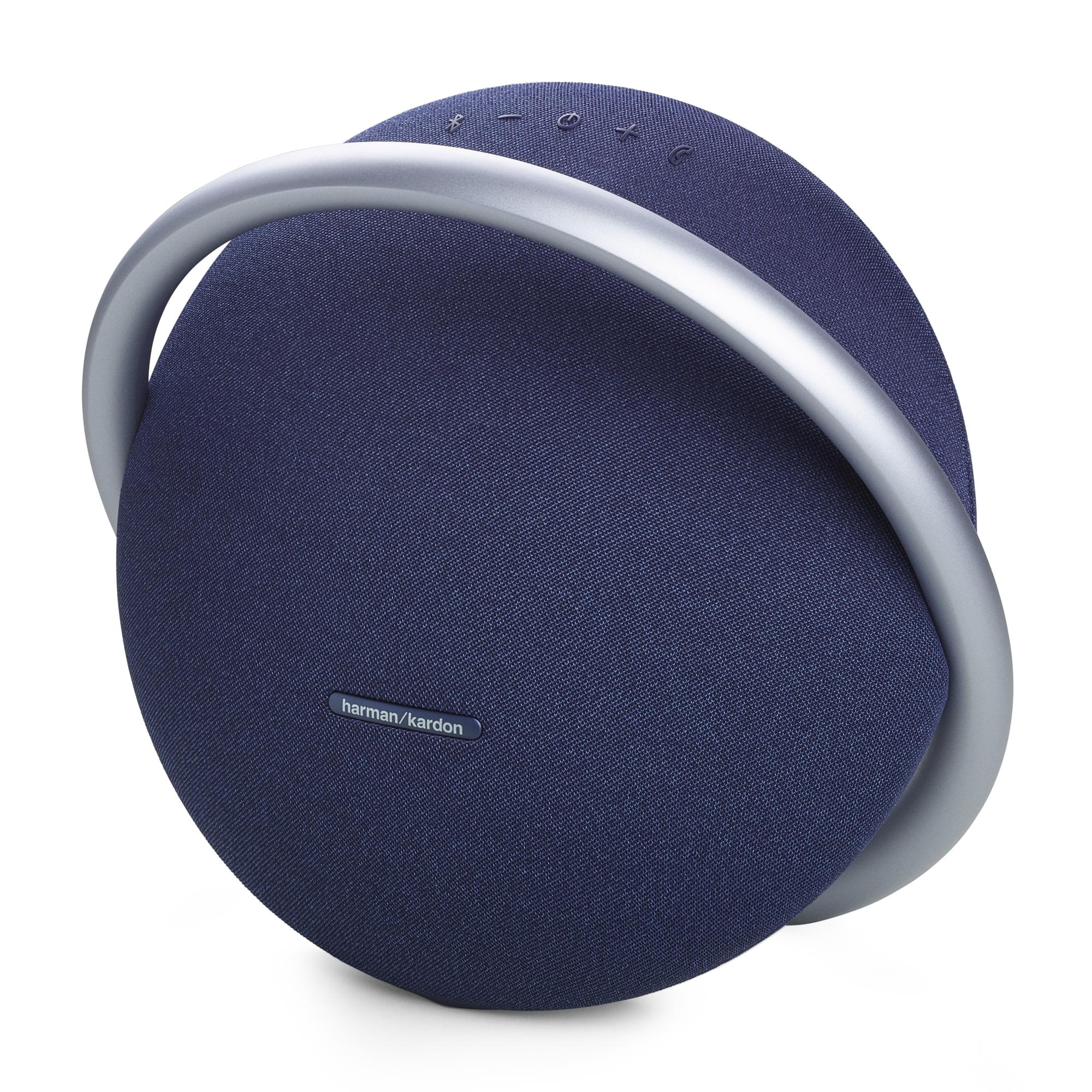 Create your own vibe with the Harman Kardon Onyx Studio 8. Both stylish and sustainable, it's crafted from recycled materials, combining eco-friendly choices and beautiful design. Use the sleek, anodized aluminum handle to carry the portable speaker anywhere. When you move the speaker from one room to the other and power on, the Onyx Studio 8 automatically calibrates itself to optimize the audio performance. You can easily use Bluetooth to pair two devices and take turns playing your favorite music. Or wirelessly pair two Onyx Studio 8 speakers together for a wider, more detailed stereo sound experience. Whether you're conferencing all day with clear, hands-free calls or unwinding to your favorite playlist, 8 hours of battery life means you'll never miss a beat.