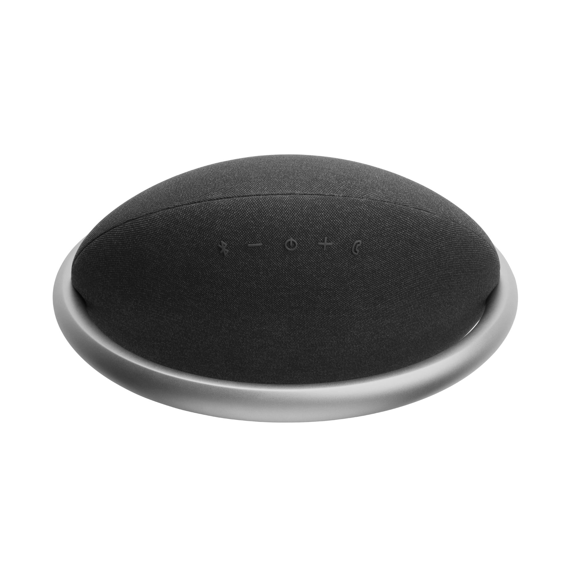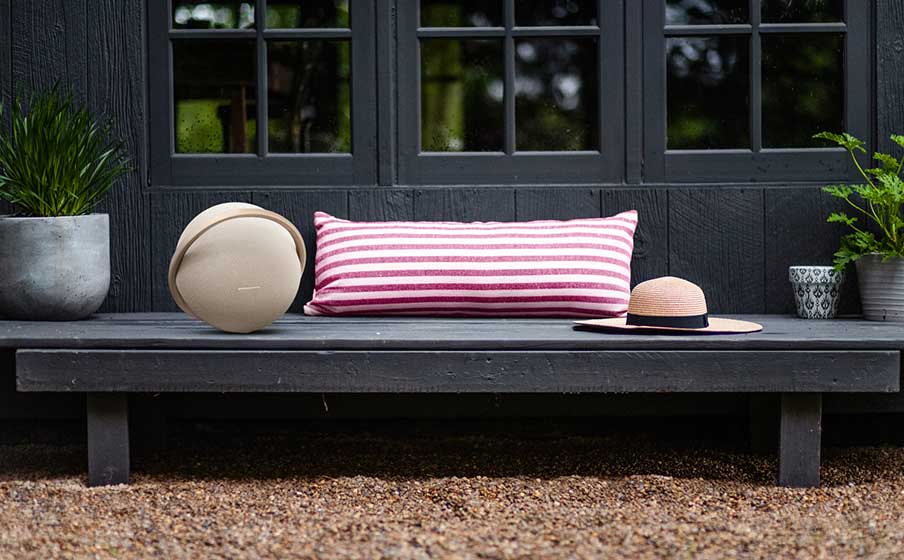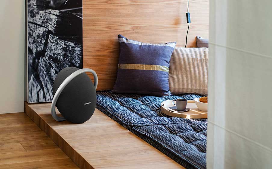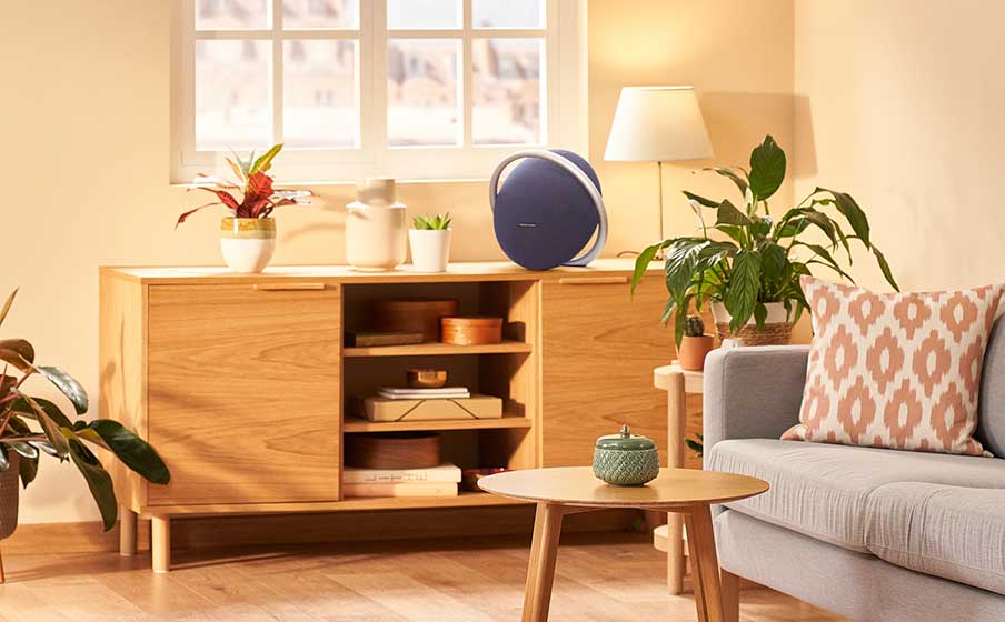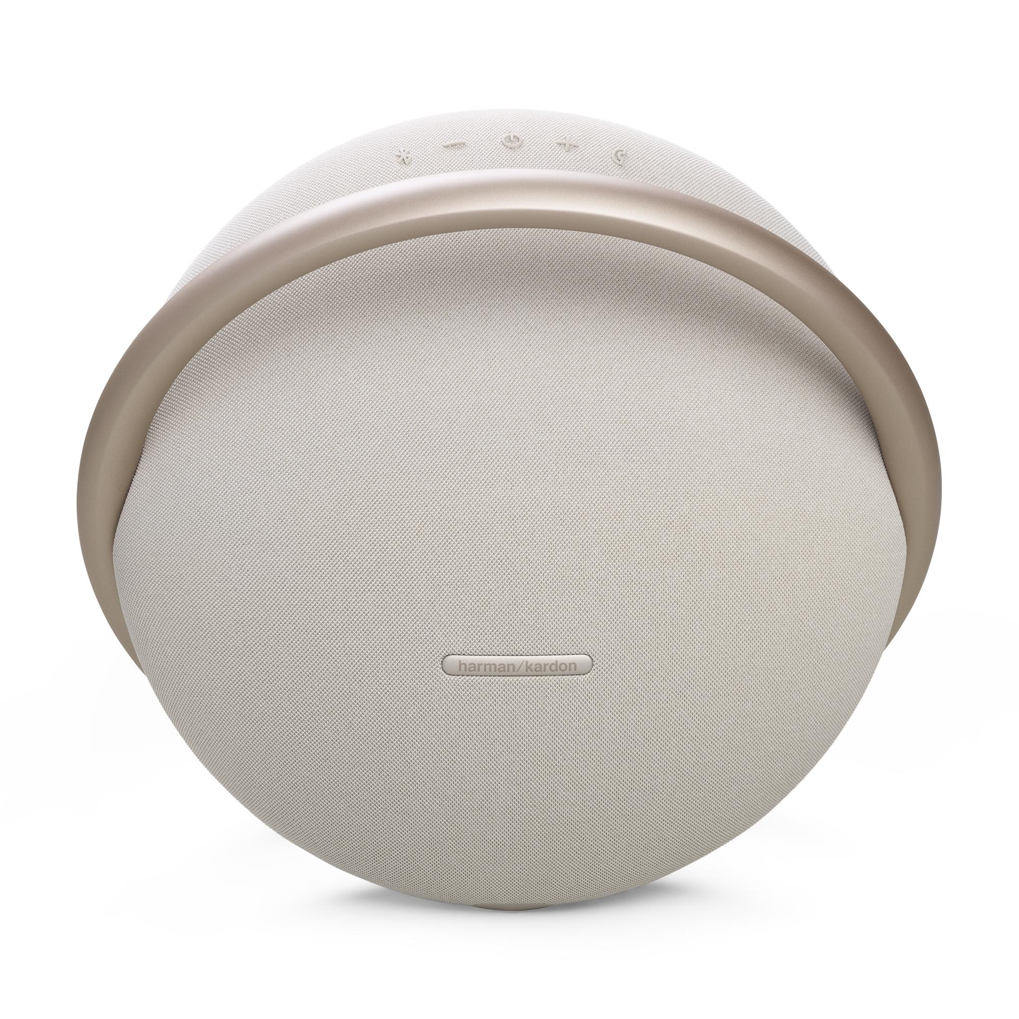 Create your own vibe with the Harman Kardon Onyx Studio 8. Both stylish and sustainable, it's crafted from recycled materials, combining eco-friendly choices and beautiful design. Use the sleek, anodized aluminum handle to carry the portable speaker anywhere. When you move the speaker from one room to the other and power on, the Onyx Studio 8 automatically calibrates itself to optimize the audio performance. You can easily use Bluetooth to pair two devices and take turns playing your favorite music. Or wirelessly pair two Onyx Studio 8 speakers together for a wider, more detailed stereo sound experience. Whether you're conferencing all day with clear, hands-free calls or unwinding to your favorite playlist, 8 hours of battery life means you'll never miss a beat.