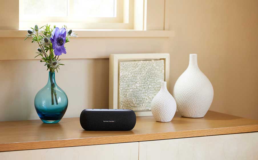 You’ll be tempted to pick it up just to feel the soft grille fabric and quality anodized aluminum accents. The elegant silhouette fits so perfectly in your hand that you’ll carry it from brewing your morning cup of tea in the kitchen into your home office for an all-day focus playlist. Then later, how about unwinding on the couch with your favorite podcast?
