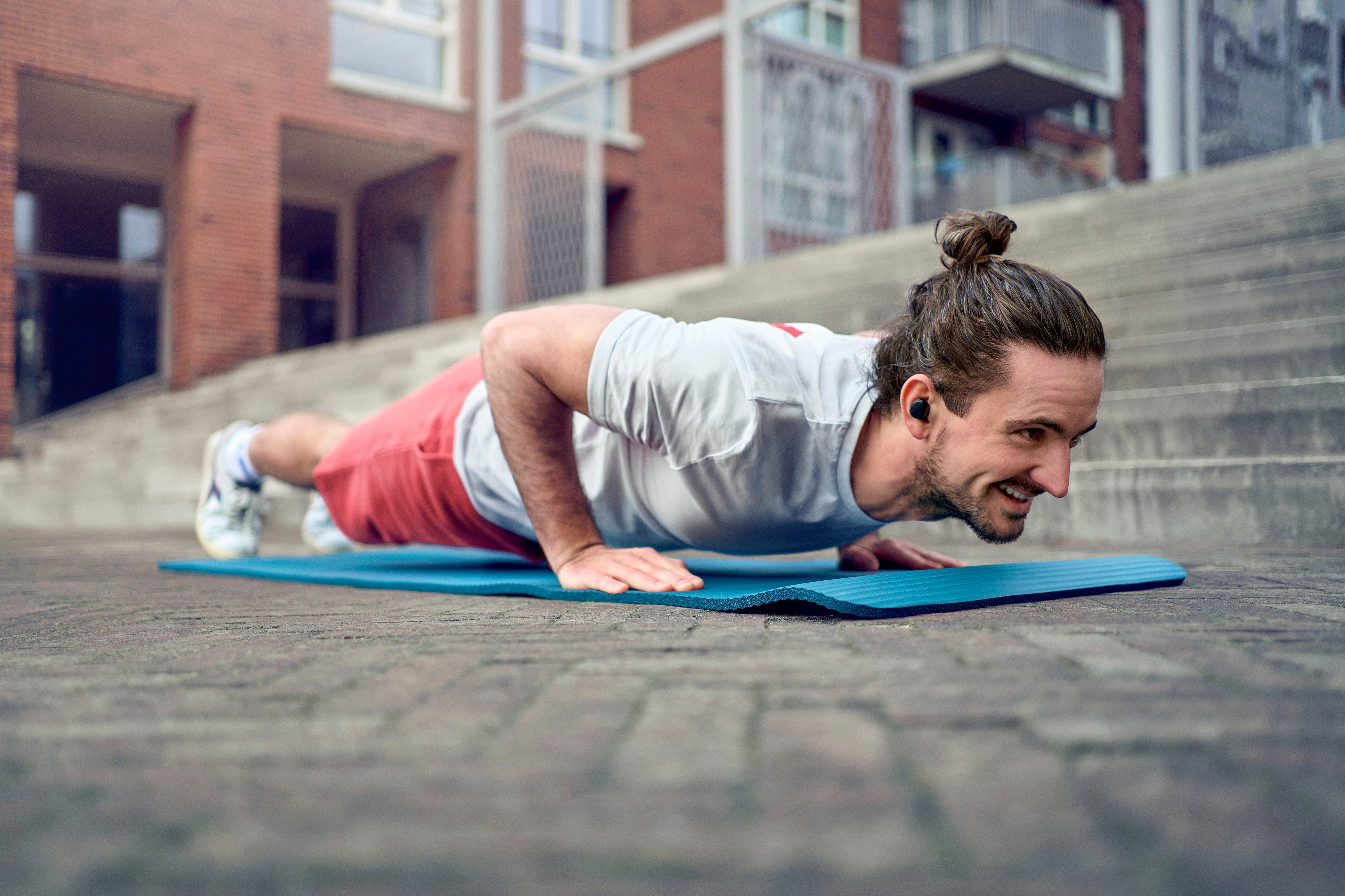 Let nothing come between you and your music! These true wireless headphones with Active Noise Canceling keep you focused on the sounds that matter. They don’t mind a little rain or sweat, and you get 29 hours play time with the case.