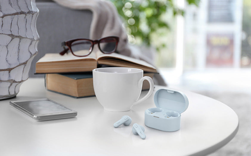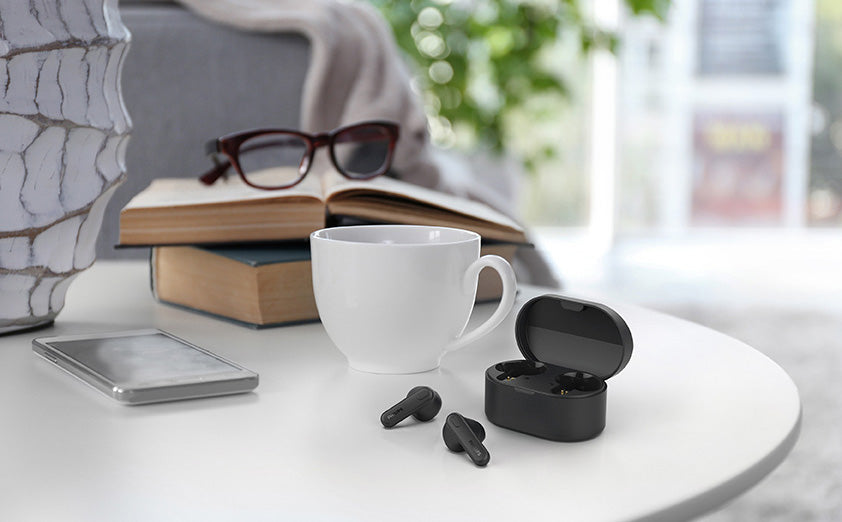 Hear your sounds perfectly. These True Wireless headphones use 13 mm drivers for lush sound and punchy bass and an AI mic for clear calls. With IPX4 splash and sweat resistance and a pocket-sized charging case for 15 hours of playtime.