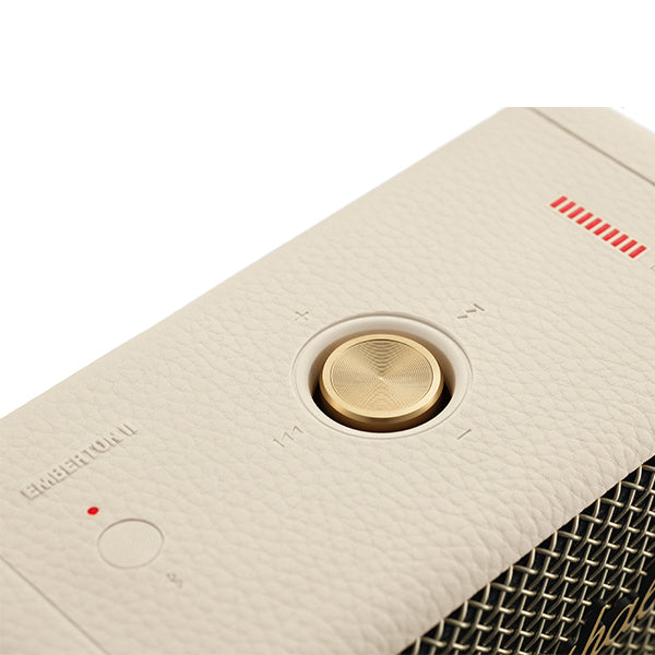 Emberton II is a compact portable speaker with the loud and vibrant sound only Marshall can deliver. Two 2’’ full range drivers and two passive radiators bring you the heavy Marshall sound you know and love. Experience absolute 360° sound with True Stereophonic, a unique form of multi-directional sound from Marshall – where every spot is a sweet spot. By separating out the spatial content of stereo recordings, Emberton II produces a sound much larger than its size and outperforms most speakers in its class. Amplify your sound with a multi-speaker Stack Mode session by connecting your speaker to other Emberton II speakers. With 30+ hours of playtime, you can enjoy the superior sound of Marshall for hours on end.